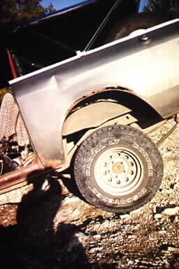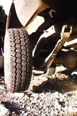 For the climb back down the rocks (The "Guardian" of these trails! *grin*) I chose the other side.. the many stair step rocks. This looked much easier going down that it did coming up, so I gently eased my front tires down a few steps, and periodically g ot out to check clearances and such, getting a much better feel for what my Scout can now do. I bounced a few times, and made my way to the bottom. Oh.. I should not that while climbing up and down this rock "cliff", I was truly impressed with how much my 31x10.5s will flex when aired to just 26psi.. they really flexed as the truck would rock back and forth.. but not enough to cause any damage.