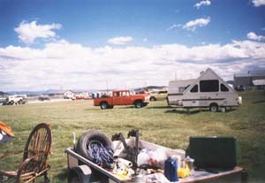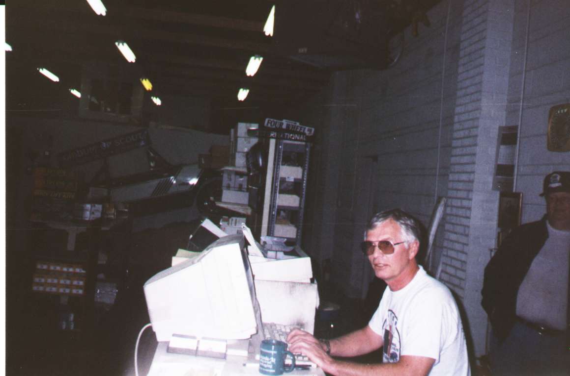 Sunday was occupied with the RACING. We all wandered around, BS'd, etc for a long while in the morning (those that woke up, anyhow).. Darrel and I bought lunch on-site and conversed with a father and son, Jim and Jimmy Donahue, about Scouts.. and my website! I never thought I'd be famous.. :-)