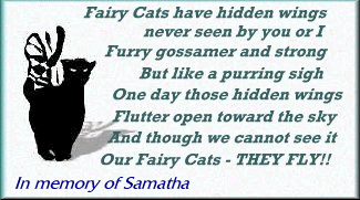 I wrote this about Sam last year, the day after she died. I've meant to put it on my page since then, but hadn't the chance to sit down and do it until now. I have a new cat now, Lacy. I love her very much, but I'll always miss Sammy. She was my best friend, and I lost her. It was hard, but I know that I will always love her and always think of her.