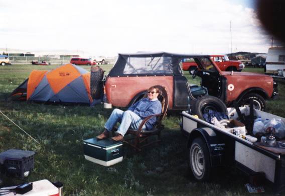 After camp was pitched and some coffee made and a little dinner eaten, the socializing began. I finally had the chance to meet Bill Thebert face to face, along with SO many others! Mark and Kathy Korsten were there from Kansas (more BinderChat regulars). I met Bill's "Significant Other" Jamie. Steve Cavender turned out to be our "neighbor".. who just happened to have a close ratio T19 I was about to buy from him. Later in the evening we wandered around and met the Kansas crew from Just Scout n' Around.. with Rick and Ken Boyer and the renowned Scot Clayton and his war-wagon (Terra w/ 4" suspension lift in a spring-over, and lots and lots of Customizing-by-Scot). We even wandered over to the Texans' camp fire and chatted a while..